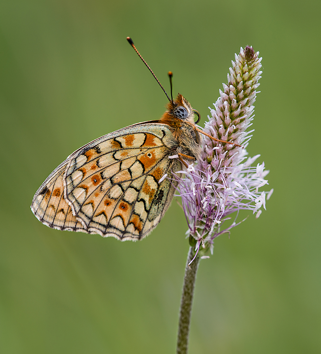 Niobe Fritillary on Fleshy Plantain